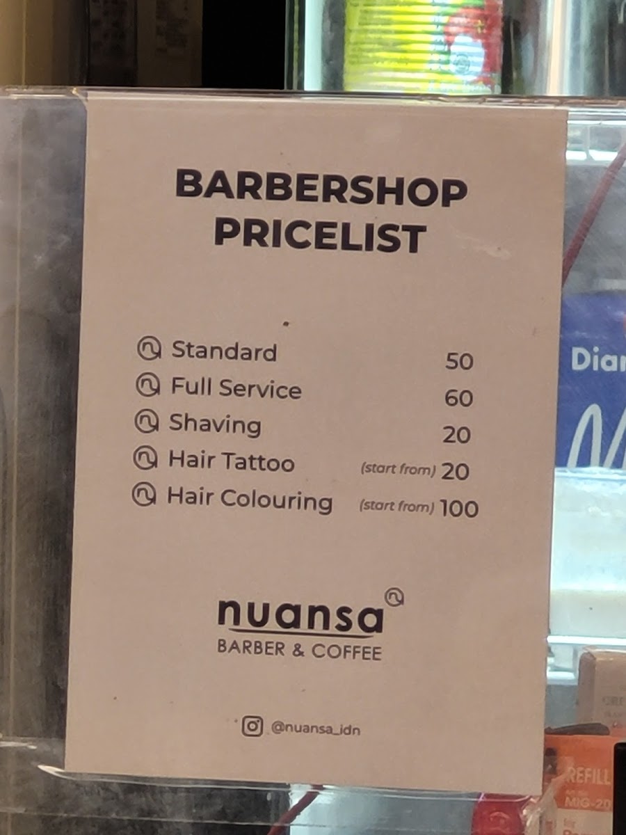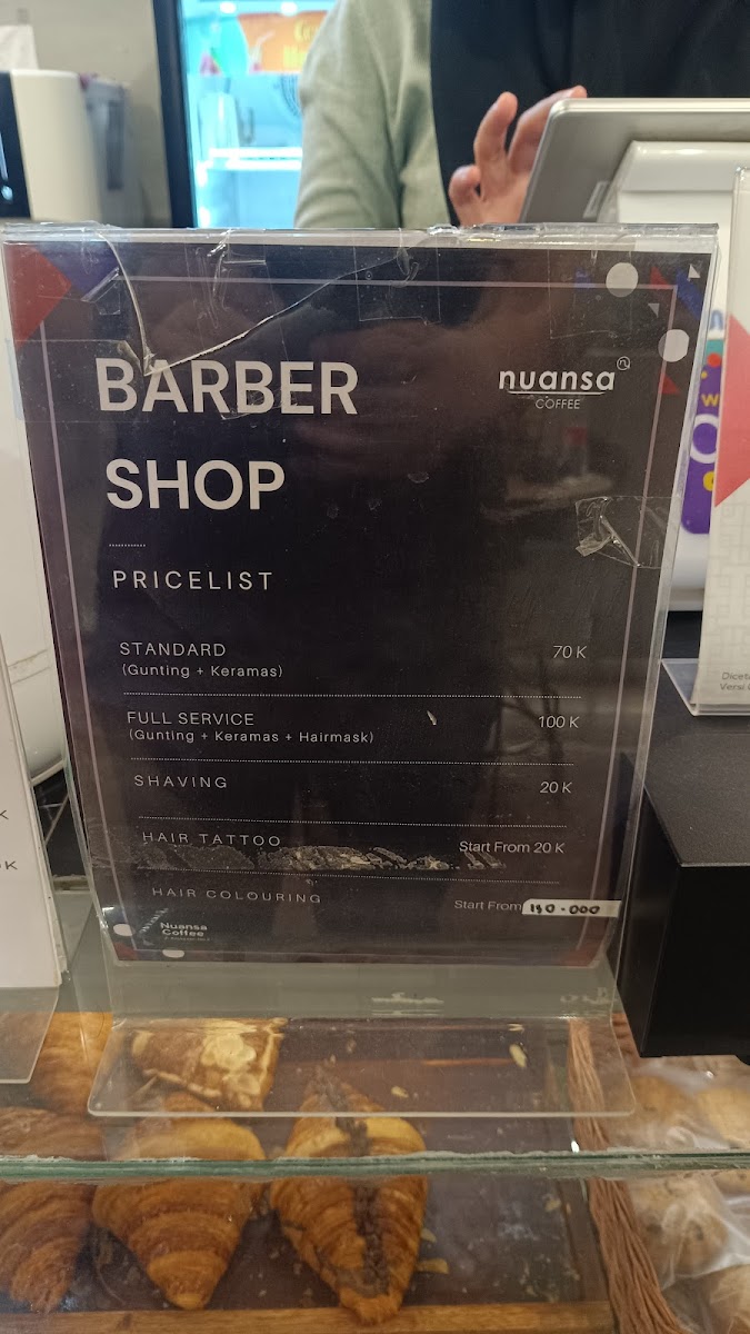 The barber services stand out, boasting affordable prices and skilled stylists, ensuring you're satisfied with your haircut every time. Additional features like shoe cleaning services add an extra layer of convenience. Despite minor drawbacks, such as limited seating and occasional warmth, Nuansa Coffee and Barber continues to be a beloved destination for both coffee aficionados and grooming enthusiasts. Come experience the blend of styles and brews!
